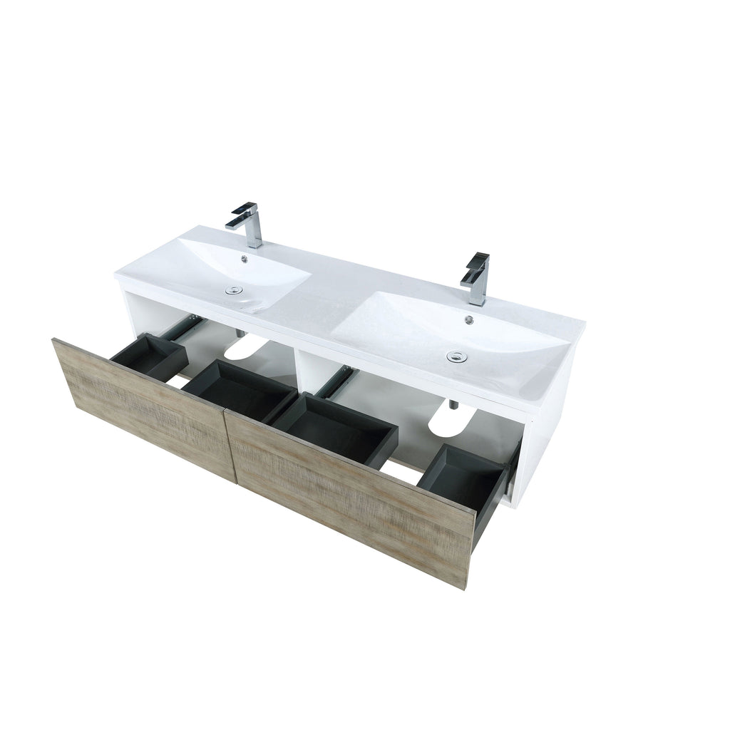 Lexora Scopi 60" Rustic Acacia Double Bathroom Vanity, Acrylic Composite Top with Integrated Sinks, and Balzani Gun Metal Faucet Set LSC60DRAOS000FGM