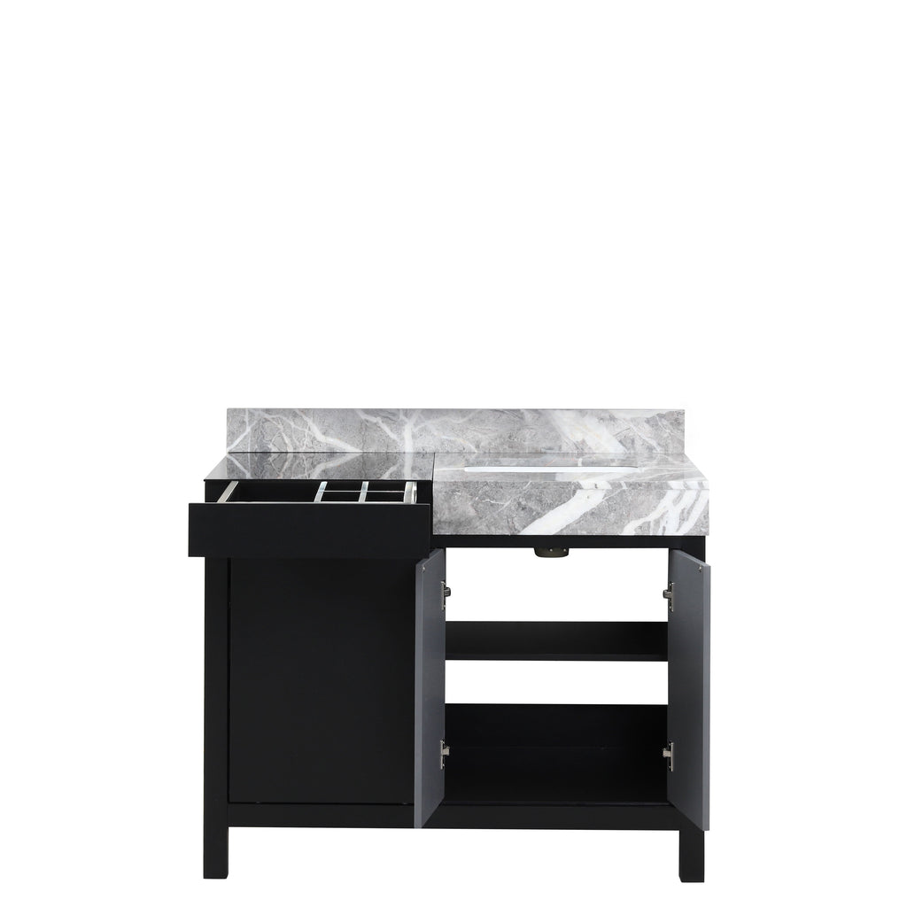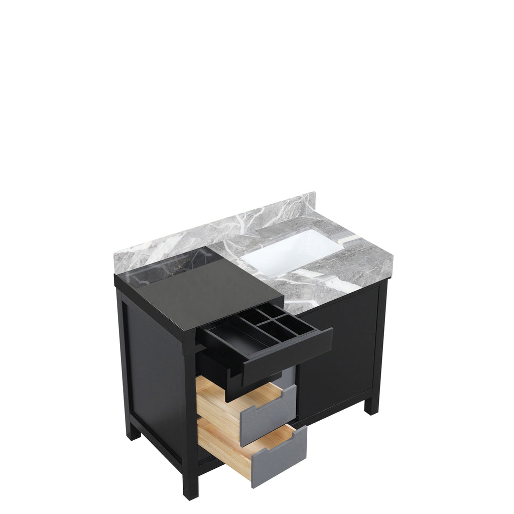 Lexora’s Zilara collection presents the perfect fusion of contemporary practicality and minimalistic elegance boasting an unbeatable aesthetic. Harmonizing a sharp castle grey marble countertop with matte gray cabinets, a glossy black framework, and a captivating tinted black glass panel. You’ll find the expansive drawer space solves all your organizational needs with the added convenience of an electrical outlet and an LED sensor, ensuring you always find what you’re looking for at any time of the night. Each component is crafted with delicate care, from our 8-stage painting and treatment process providing superior moisture resistance, to the soft closure hardware enabling an effortless experience. Zilara offers the ideal solution for those who want a beautiful vanity that pushes the boundaries of urban sophistication with an impactful decor statement and an even greater asset to tasteful, demanding design.