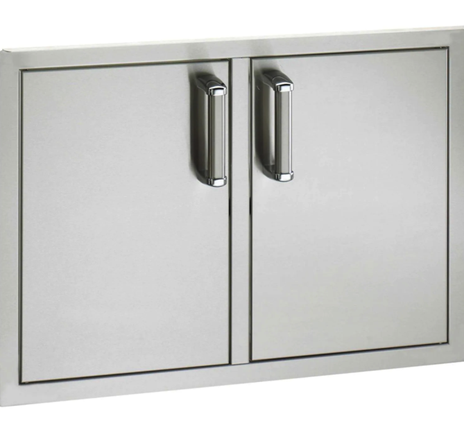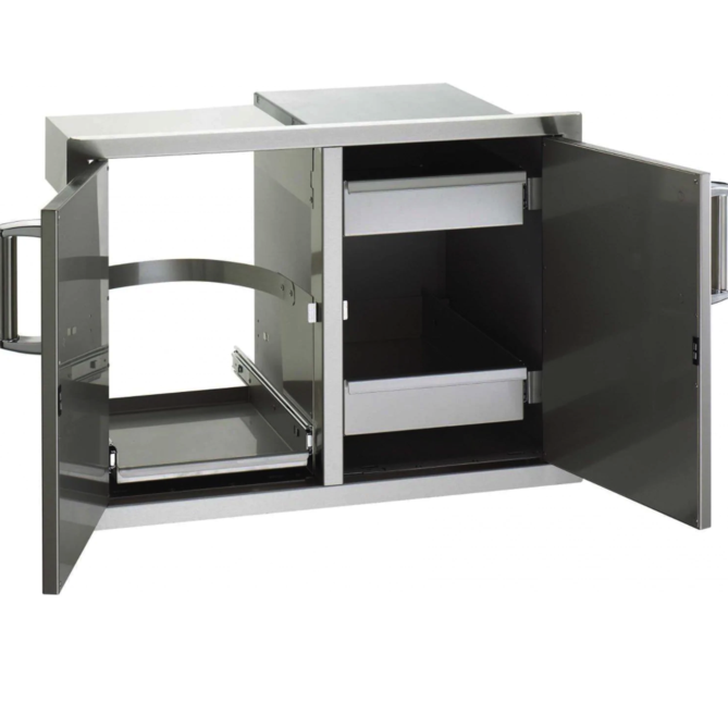 The Fire Magic Premium Flush 30-Inch Double Access Door With Drawers And Trash Bin Storage With Soft Close ( 53930SC-12) by Fire Magic Grills. Complete your Fire Magic outdoor kitchen with their line of doors and drawers. The Fire Magic Echelon Flush Mount Double Access Door With Drawers And Trash Bin Storage features sealed, double-walled, foam insulated construction for a solid feel.