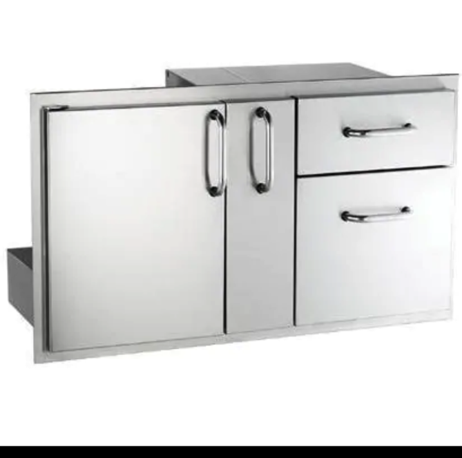 The slim access door conveniently stores platters and serving trays in your outdoor kitchen. A strong magnetic latch ensures secure closure and polyurethane foam gives a solid feel and insulation. This door and drawer combo is constructed from premium quality, 304-grade stainless steel for lasting durability.