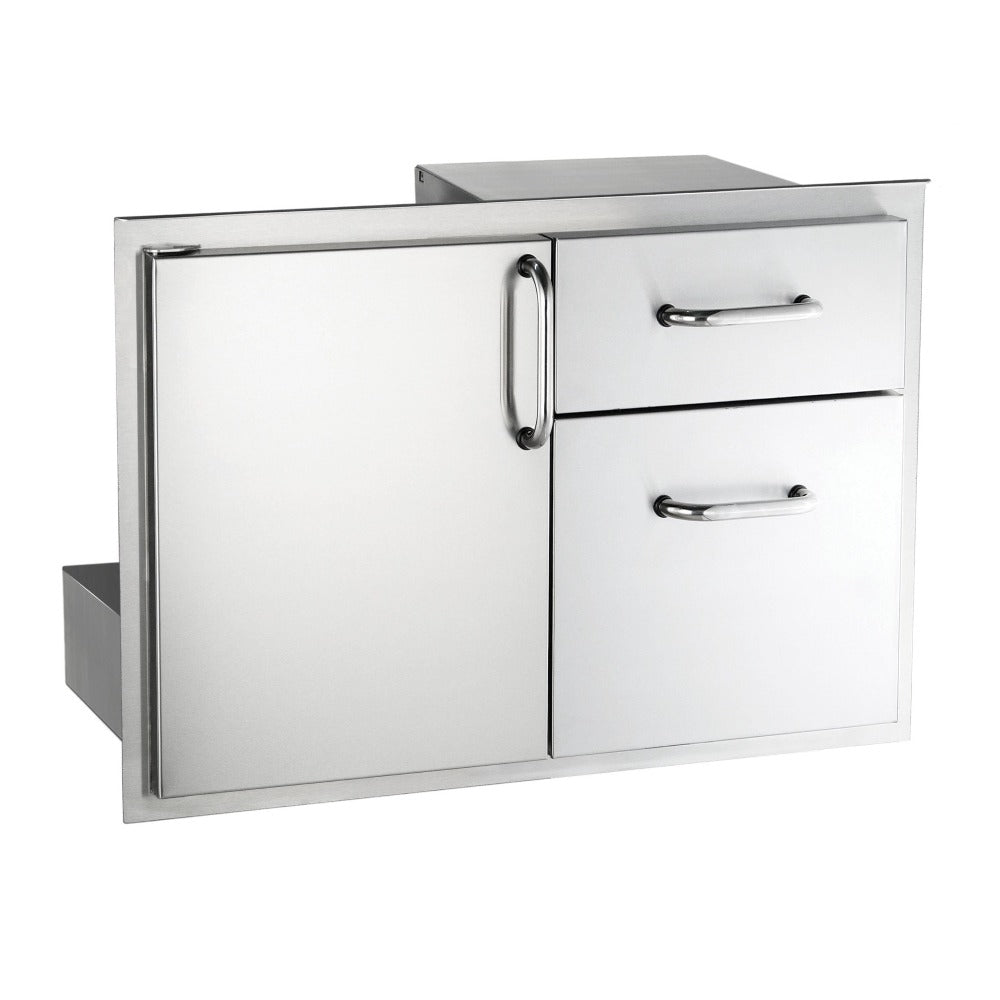 These 304 stainless steel doors and drawers feature outside mounting, double wall and square edge construction, a slim tubular stainless steel handle, and a heavy-duty magnetic latch.