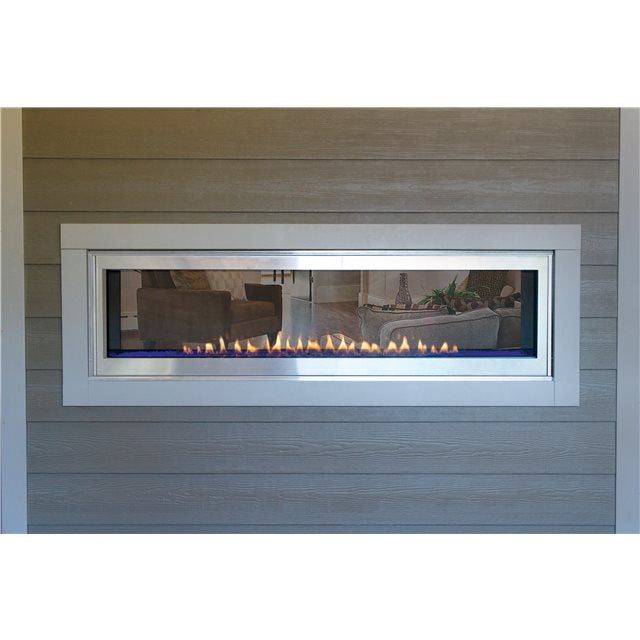 The Boulevard 60 See-Through installs as a conventional see-through on an interior wall but also works as an indoor/outdoor see-through on an exterior wall (requires DFEV60SS stainless steel frame for the outside wall). Available in LP (38,500 BTUs) and Natural Gas (40,000 BTUs).