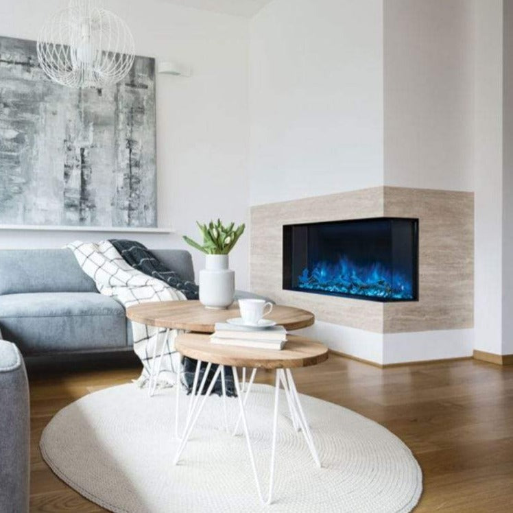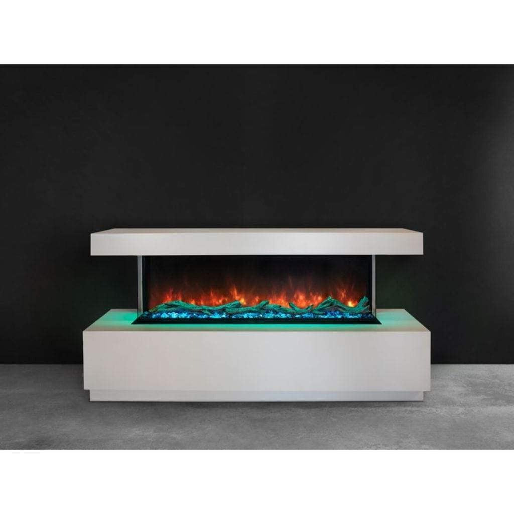 The modern flames electric fireplace also features 2 Acrylic Crystal sets give a burning coal effect to bring more authenticity to your fireplace. A New vibrant back screen enhances the flame color to keep a crisp look even in direct sunlight. This unit allows you to change Flame Color, Ember Bed and Down Lighting Colors independently or in sync. The controls include a standard multi-function hand held RGB remote or control the Landscape Pro Multi with your phone by downloading the Modern Flames remote app.