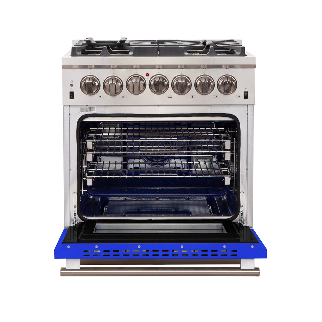 Forno 30" Capriasca Gas Range with 5 Burners and Convection Oven in Stainless Steel with Blue Door (FFSGS6260-30BLU)
