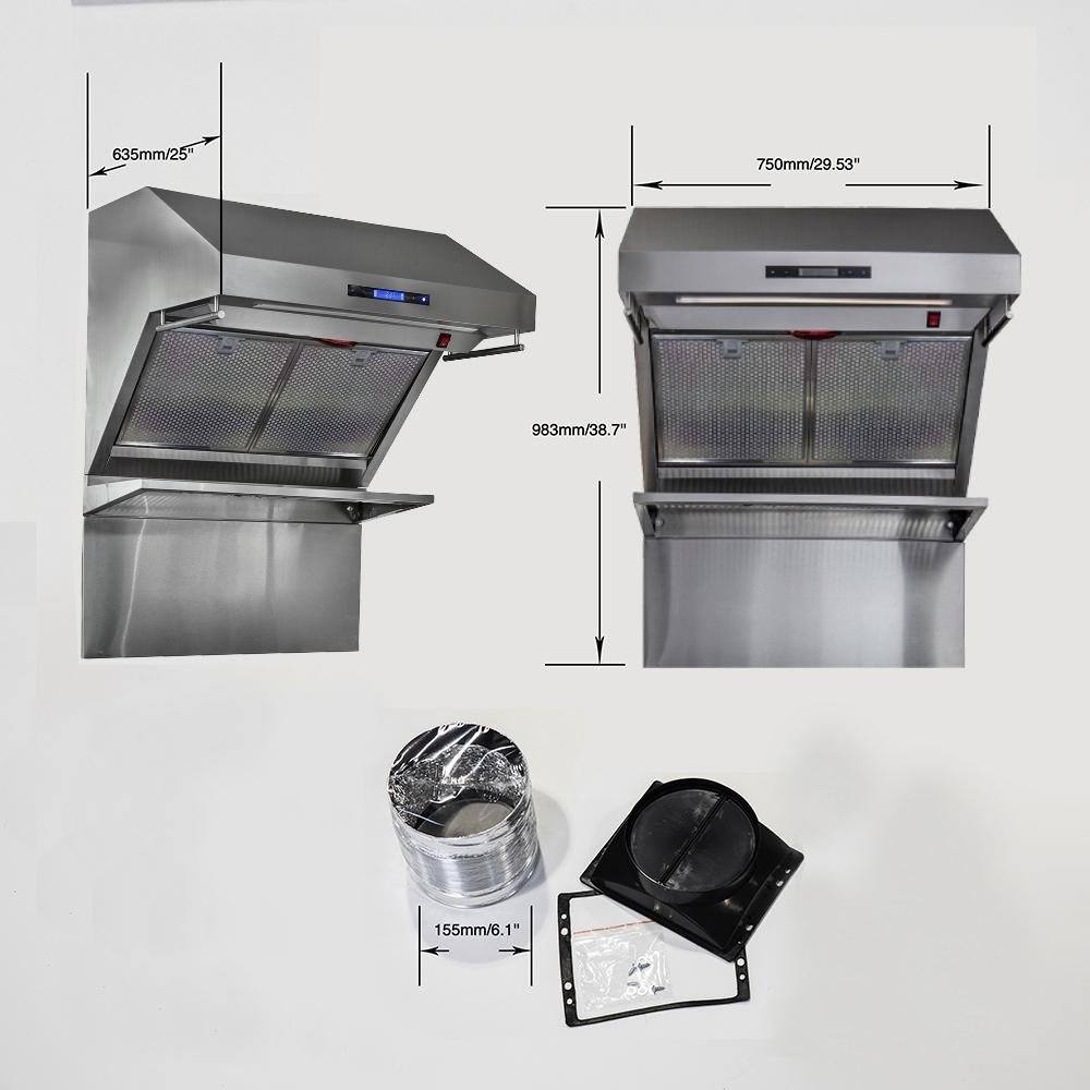 FORNO 30" Wall Mount Range Hood with Red Light Warmer, Shelf/Backsplash, and 600 CFM Motor (FRHWM5029-30HB)