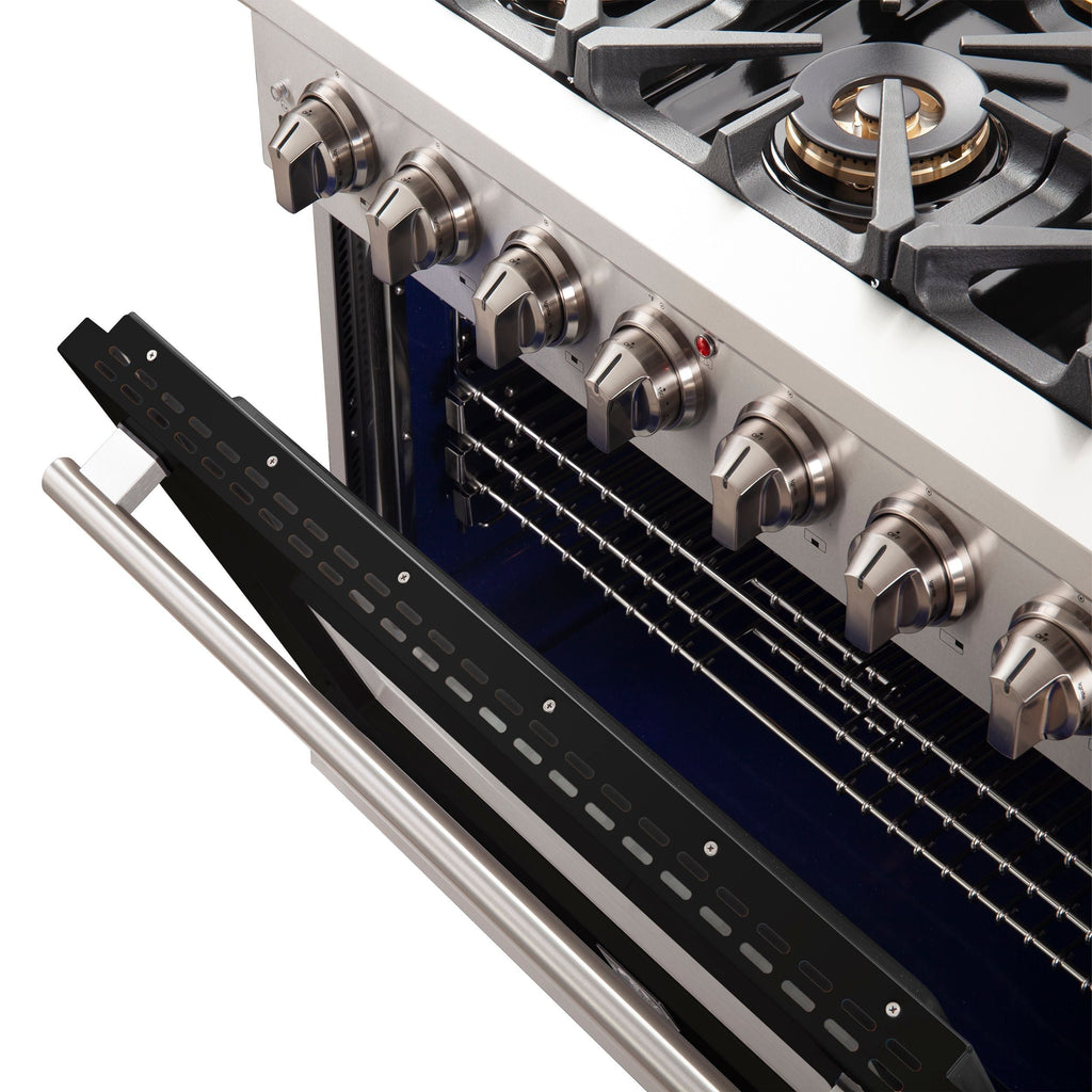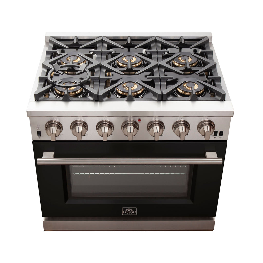 Forno 36" Capriasca Gas Range with 6 Burners and Convection Oven in Stainless Steel with Black Door (FFSGS6260-36BLK)