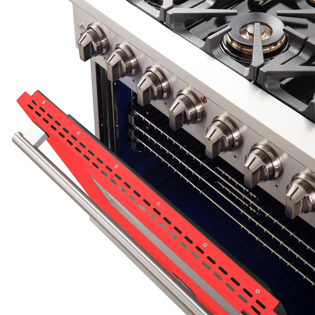 Forno 36" Capriasca Gas Range with 6 Burners and Convection Oven in Stainless Steel with Red Door (FFSGS6260-36RED)
