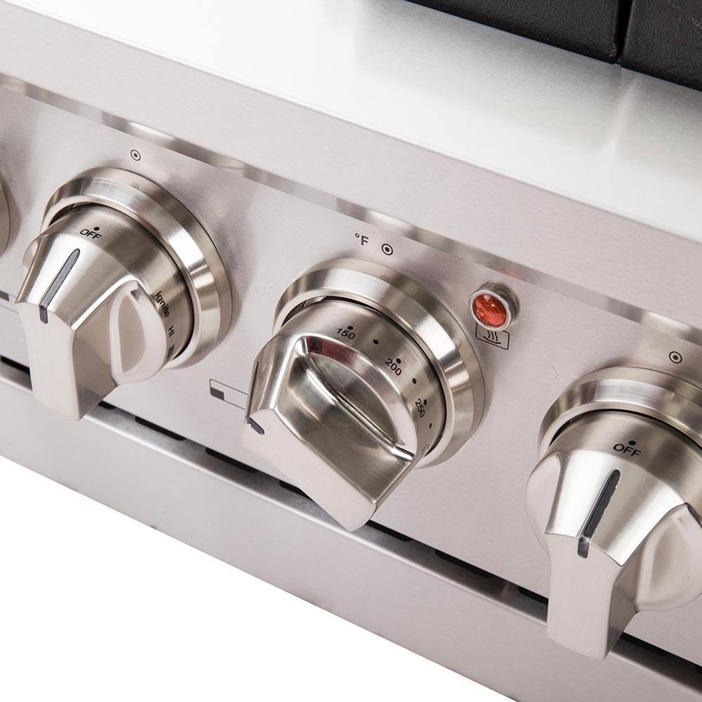 Brass Burners - Elegant brass burners effectively channel heat for desired cooking results.