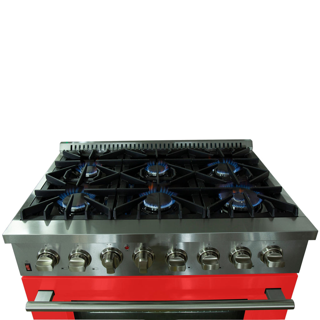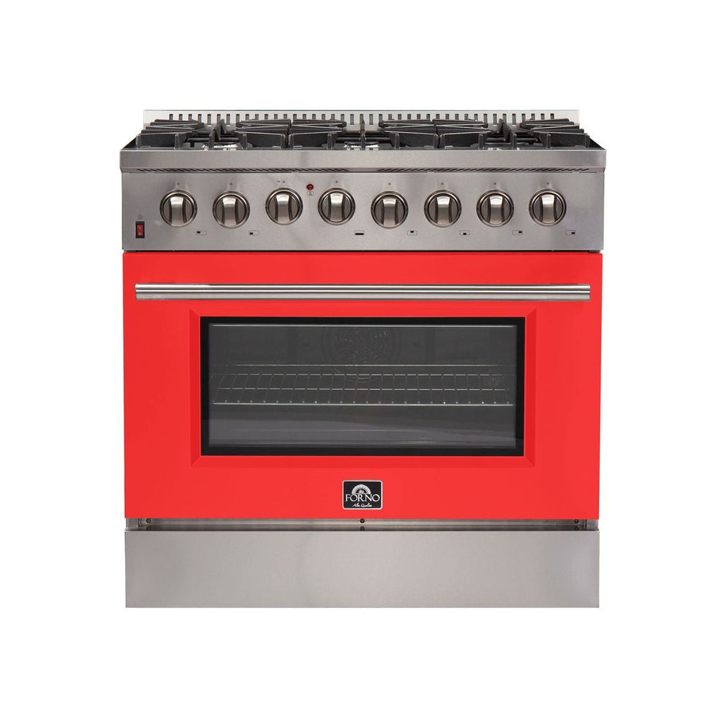 Forno 36" Galiano Dual Fuel Range with 6 Gas Burners and 240v Electric Oven in Stainless Steel with Red Door (FFSGS6156-36RED)