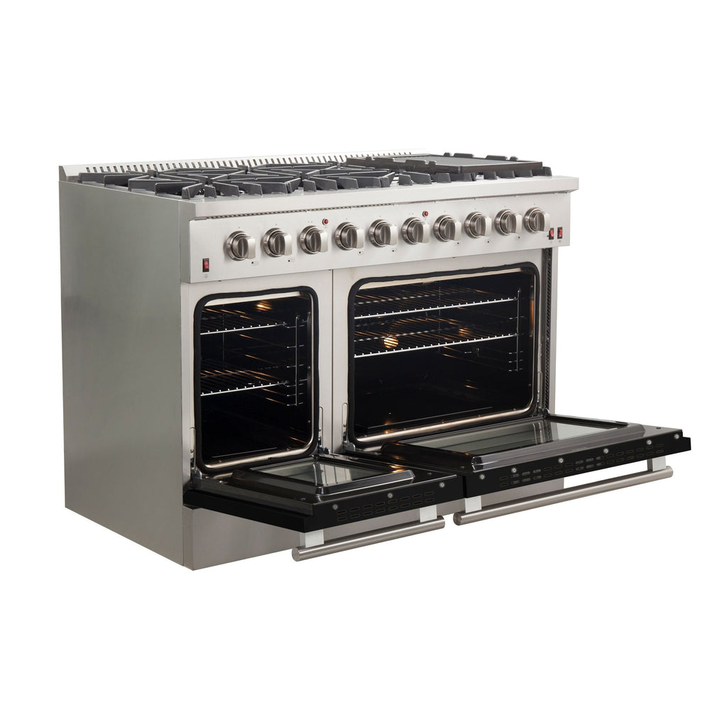 Forno 48-Inch Galiano Gas Range with 8 Gas Burners and Convection Oven in Stainless Steel with Black Door (FFSGS6244-48BLK)