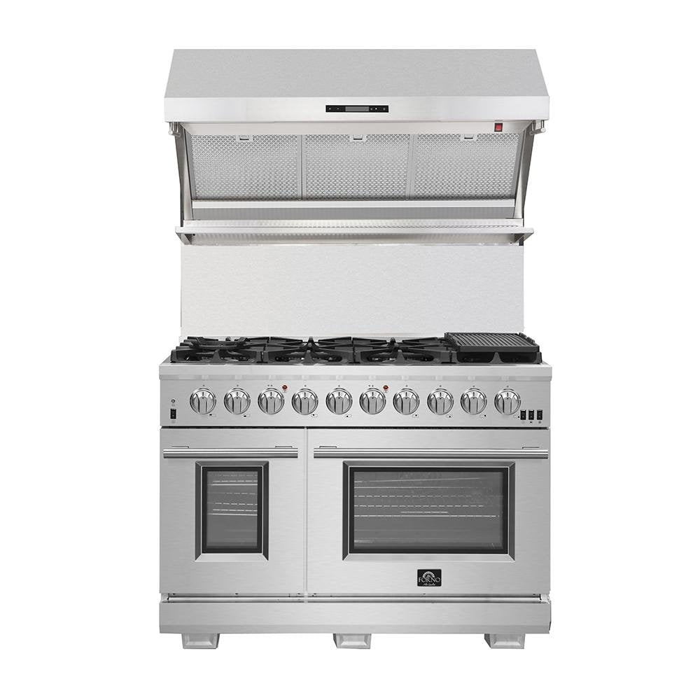 FORNO 48" Wall Mount Range Hood with Red Light Warmer, Shelf/Backsplash, and 1200 CFM Motor (FRHWM5029-48HB)
