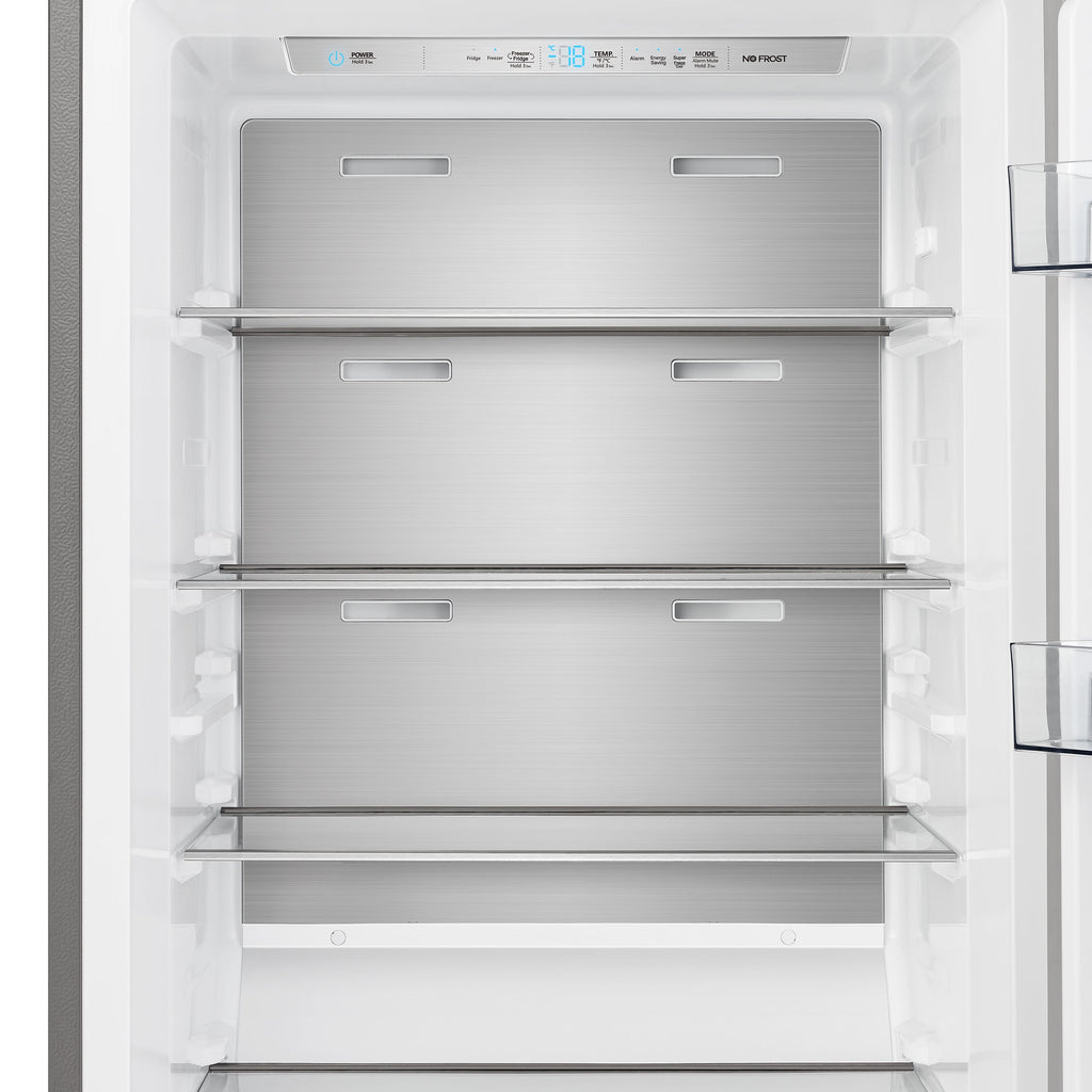 Elegant glass shelves with silver trim and practical plastic door balconies not only enhance the overall appeal but also offer efficient storage solutions. With the ℉/℃ Transform Ease feature, you can switch between Fahrenheit and Celsius effortlessly. Brilliant LED lighting illuminates the interior, making it a joy to locate your desired items. Three glass shelves and three plastic drawers with silver trim provide flexible storage options, catering to your everyday routine. Temperature settings are easily managed through the internal electronic touch control panel, ensuring your food stays at the perfect temperature. Durable and built to last, the VCM door panel and metal back guarantee longevity.