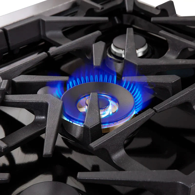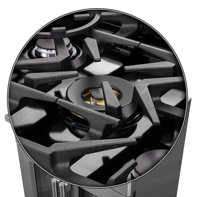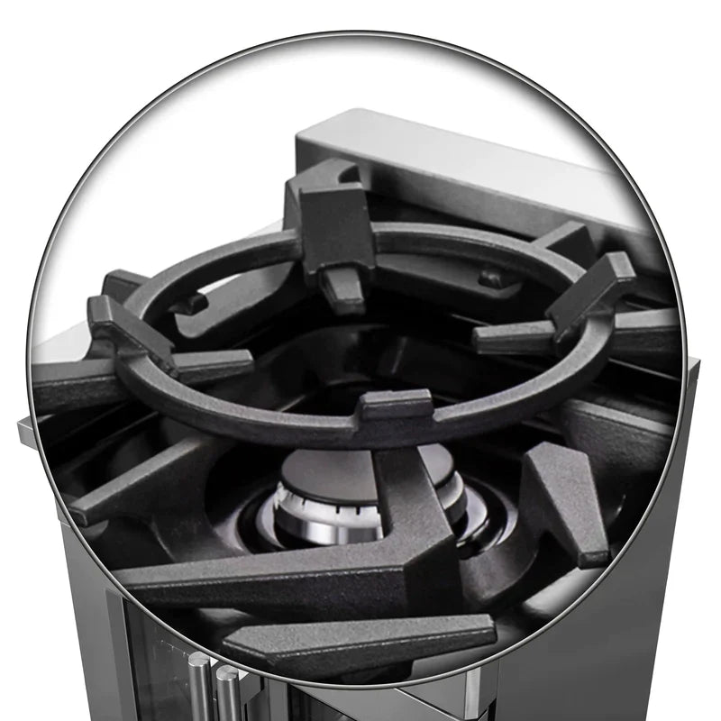 - Heavy-Duty Continuous Cast Iron Grates provide even heat distribution and stable cookware mobility