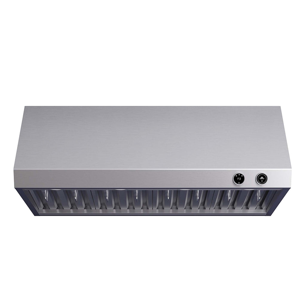 • Powerful 1200 CFM Dual Motor: Delivers high-performance ventilation, eliminating smoke, odors, and grease, making it ideal for heavy-duty cooking.