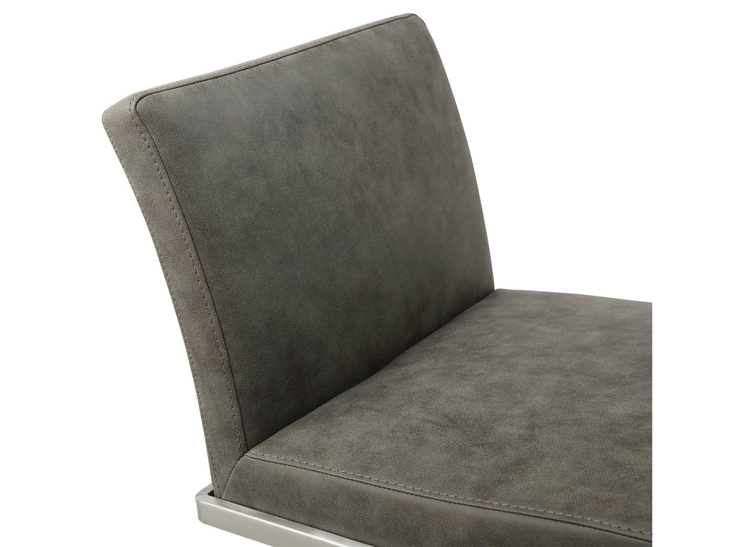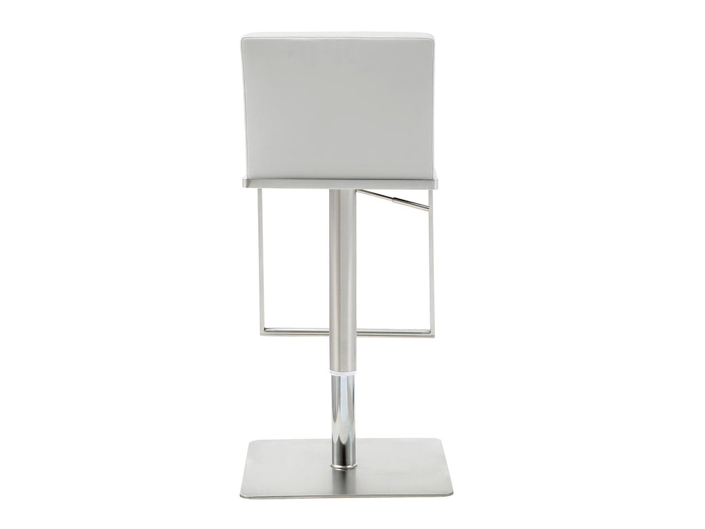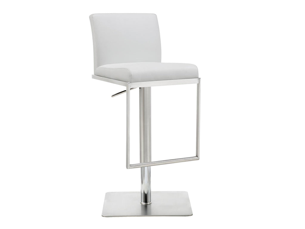 Clay Barstool, Available in White Faux Leather or in Grey Faux Leather, Adjustable Height with Gas Lift, Square Footrest and Silver Stainless-Steel Base.