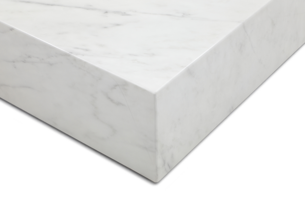 Cube Rectangular Coffee Table, High Gloss White Marble, with Castors.
