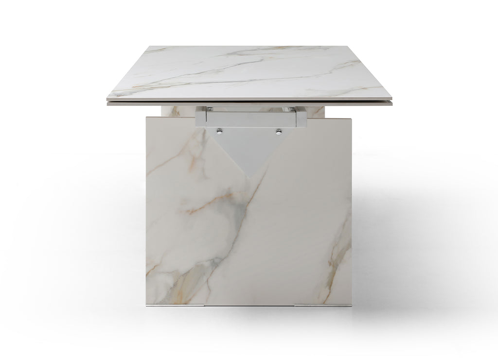 Georgia Rectangular Extendable Dining Table, White Ceramic Top and Base.