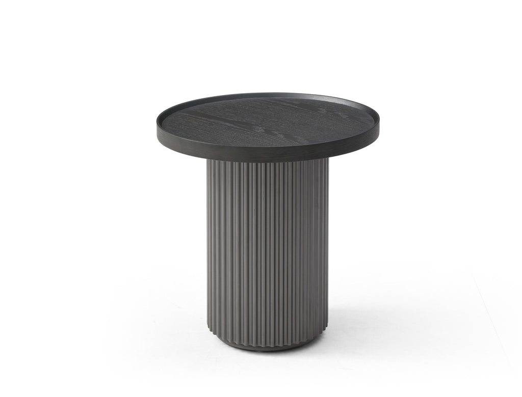 Heidi Round Side Table, Top in Smoke Oak Veneer, Ribbed Base in Dark Grey Lacquer.