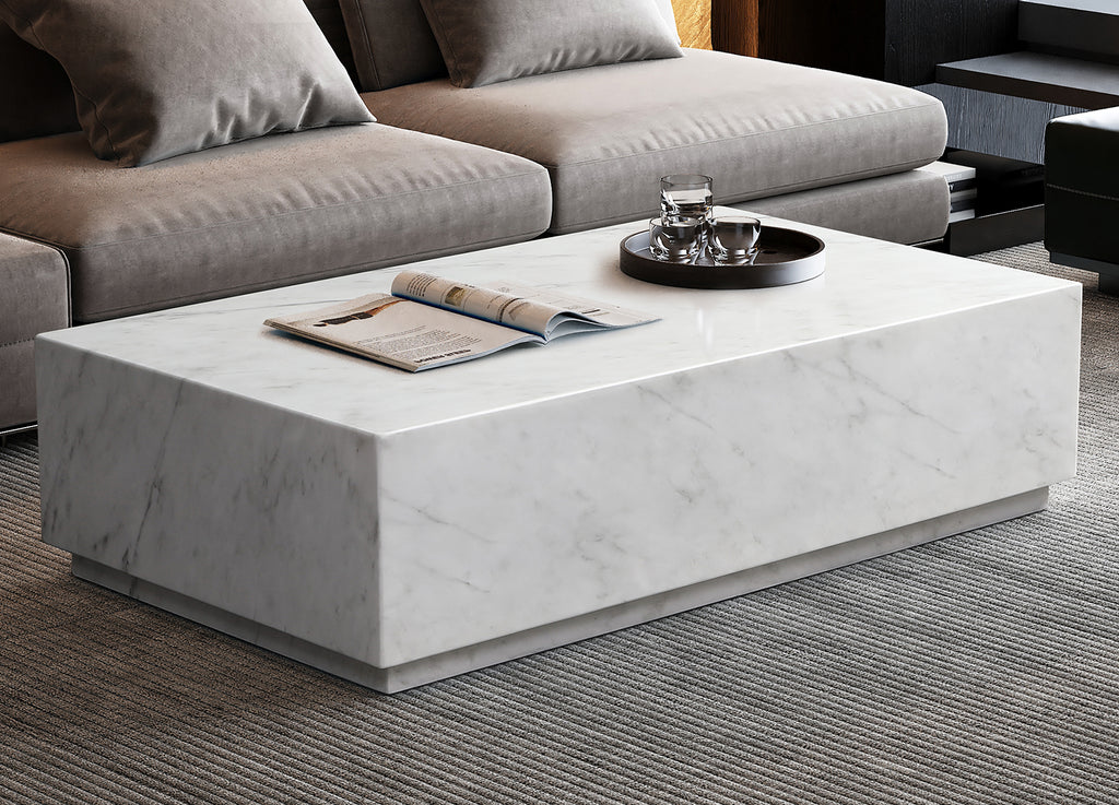 Iris Rectangular Coffee Table, in High Gloss Brown Dark Emperador Marble or in High Gloss White Marble, without Castors.