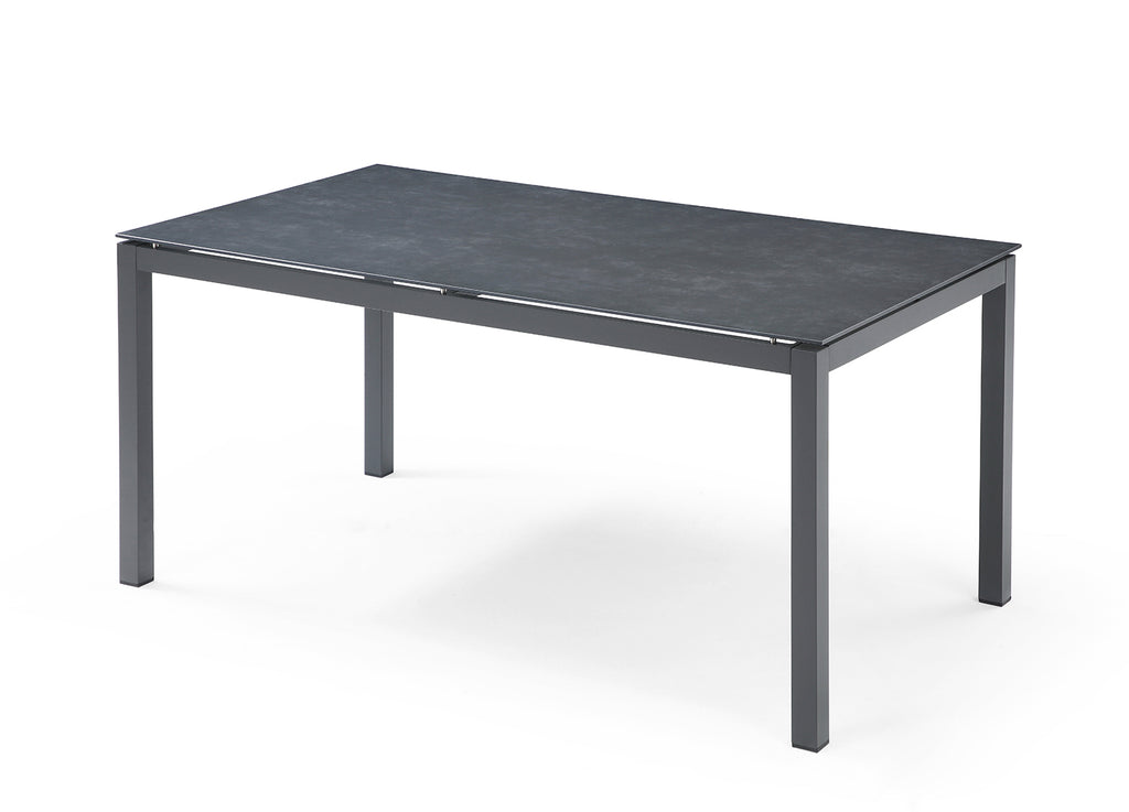 Lynn Outdoor Dining Table, 8mm Glass and Ceramic Top, Base in Dark Grey Powder-Coated Aluminium.