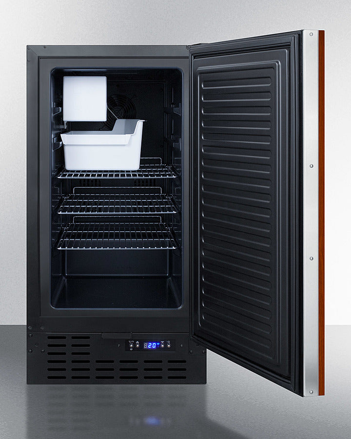 Sized just under 18 inches wide, the BIM18IF features a front-breathing design for built-in installation, with a fully finished cabinet to also allow freestanding use. The door comes with Summit's integrated stainless steel frame designed to accept overlay panels for a custom look that matches or complements other cabinetry. No drain or pump is required for use, offering more flexibility in where you place the unit.