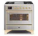 ILVE 36 Inch Majestic II Series Dual Fuel Natural Gas Range with 6 Burners and Griddle with 3.5 cu. ft. Oven Capacity TFT Oven Control Display (UM09FDNS3)