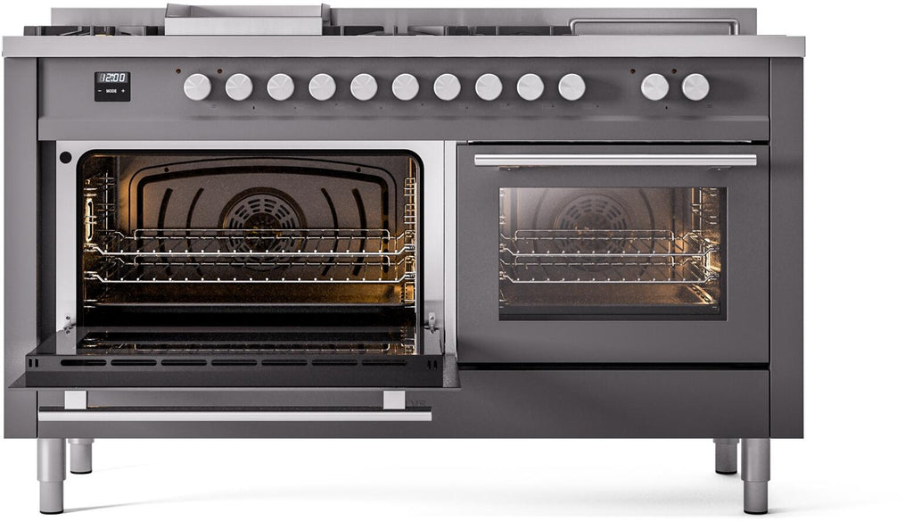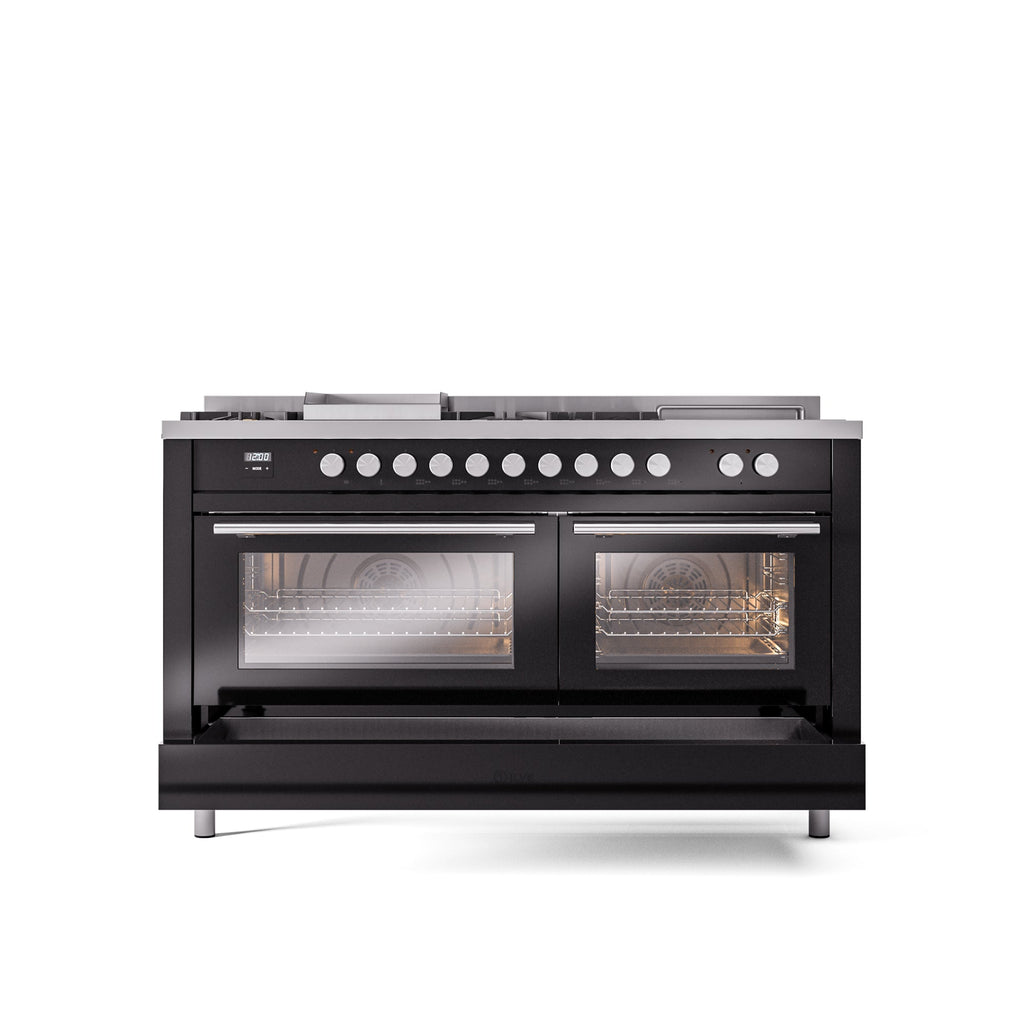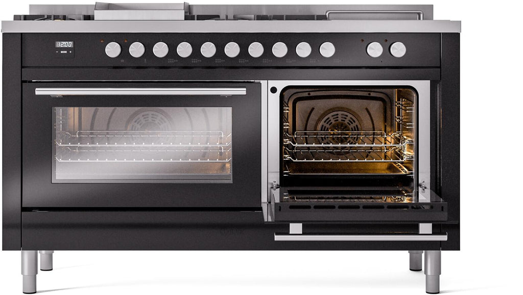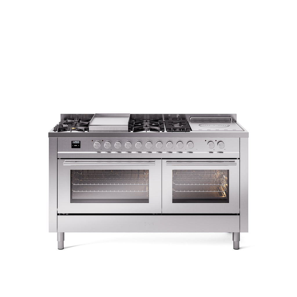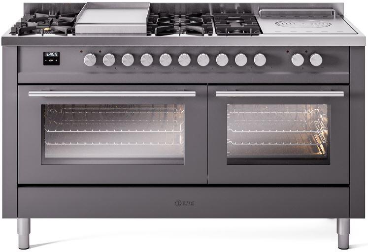 ILVE Professional Plus II 60 Inch Dual Fuel Freestanding Range in Stainless Steel with Trim - UP60FSWMP