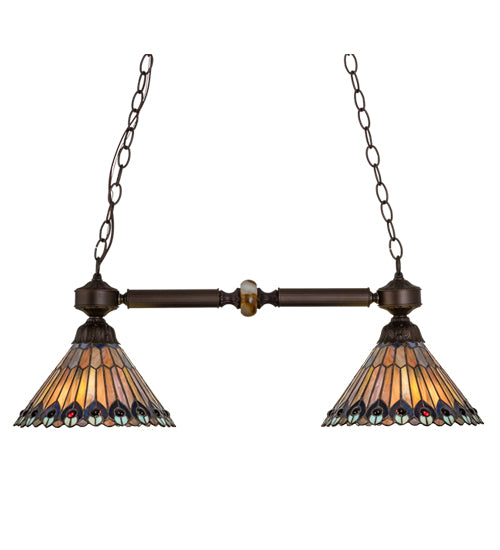 Meyda 32.5"L Tiffany Jeweled Peacock 2 LT Island Pendant 27411