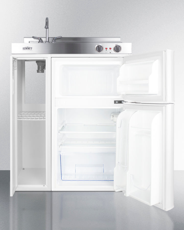 Summit brings true convenience to smaller spaces with all-in-one combination kitchenettes. Available in four sizes, these units come fully featured with everything you need for the home foodservice experience, including a 2-burner cooktop, sink, storage cabinet, and refrigerator with a freezer compartment.