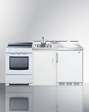 Summit's line of all-in-one combination kitchenettes brings complete kitchen convenience in a slim-fitting design. These units come fully featured with everything you need for the home food-service experience, including a refrigerator with a freezer compartment, 4-burner smooth top range with oven, sink with faucet, cutlery bin with a removable cutting board cover, and storage cabinet for dry goods