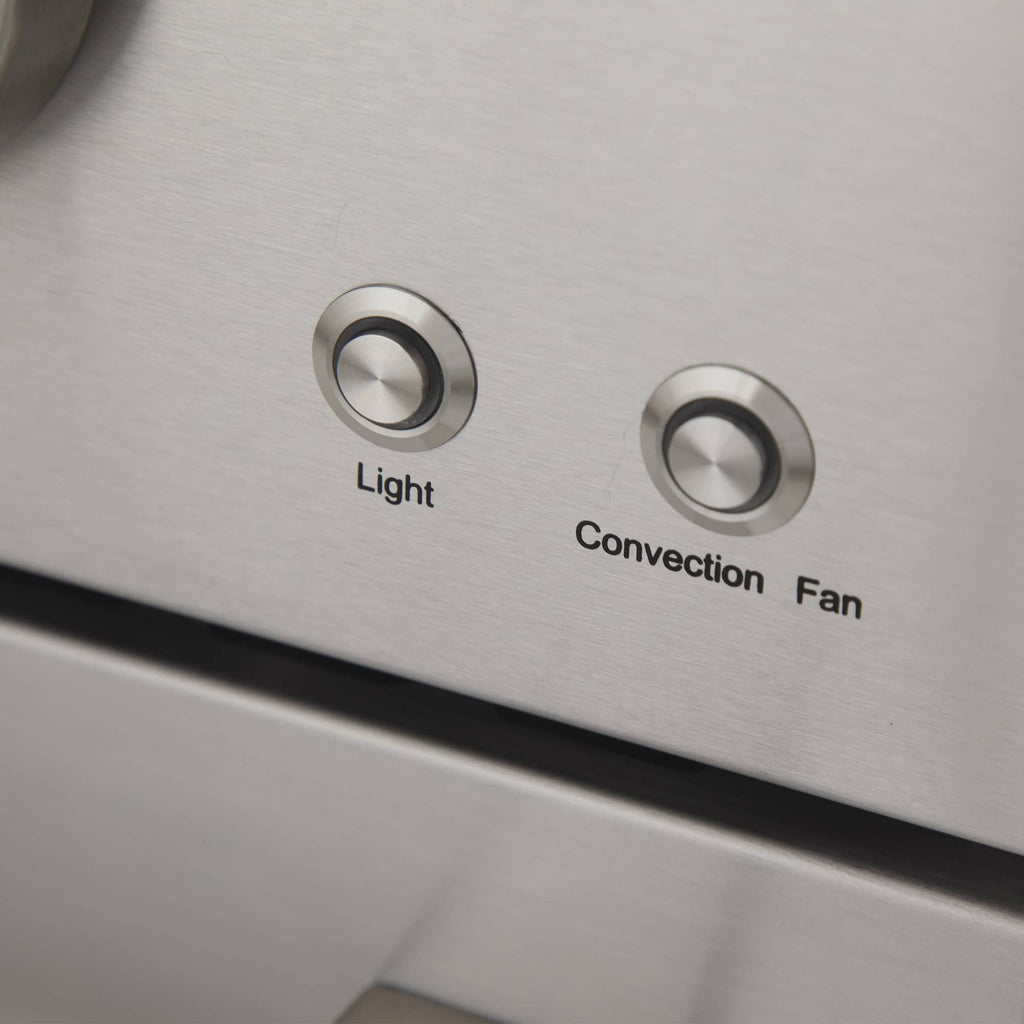 - Adjustable, telescopic, stainless steel shelves create ease of use and easy to clean oven