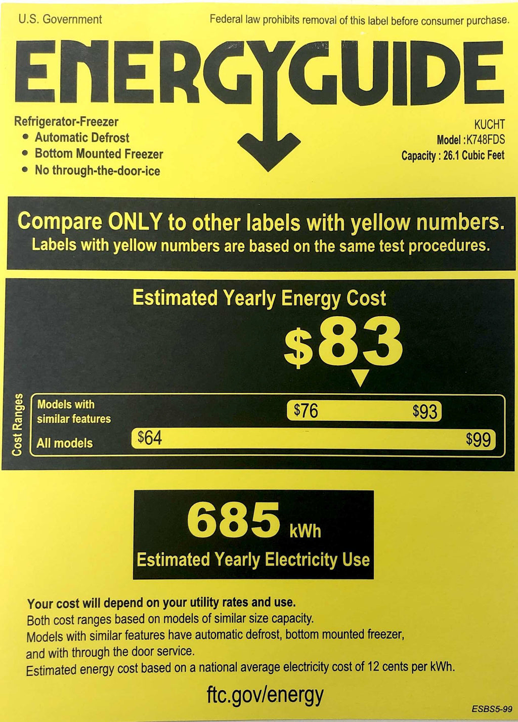 3. Kucht 36" French Door Refrigerator in Stainless Steel - 26.1 cu. ft (K748FDS)