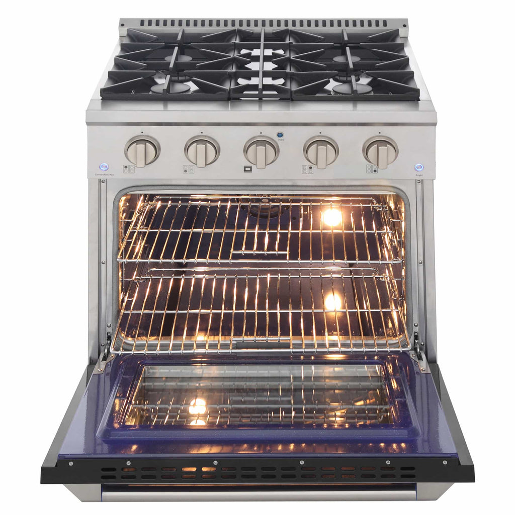 KUCHT Professional 30 in. 4.2 cu. ft. Dual Fuel Range with Sealed Burners and Convection Oven in Stainless Steel with Black Oven Door