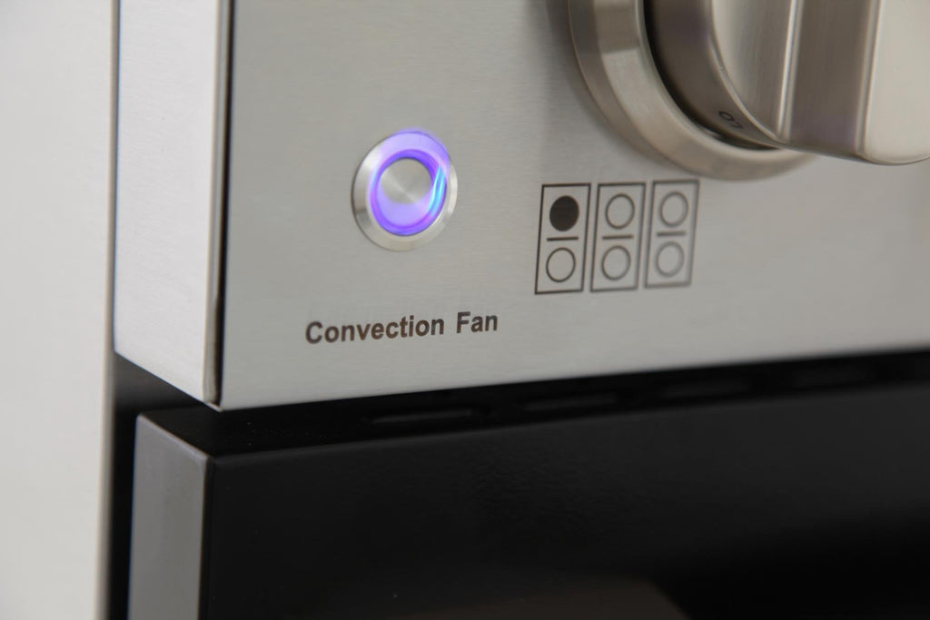 This 36" Freestanding Gas Range by Kucht offers 6 sealed burners and a 5.2 cu. ft. capacity oven. The range features manual convection cooking mode, tube burner broiler, blue porcelain oven interior and black porcelain top.
