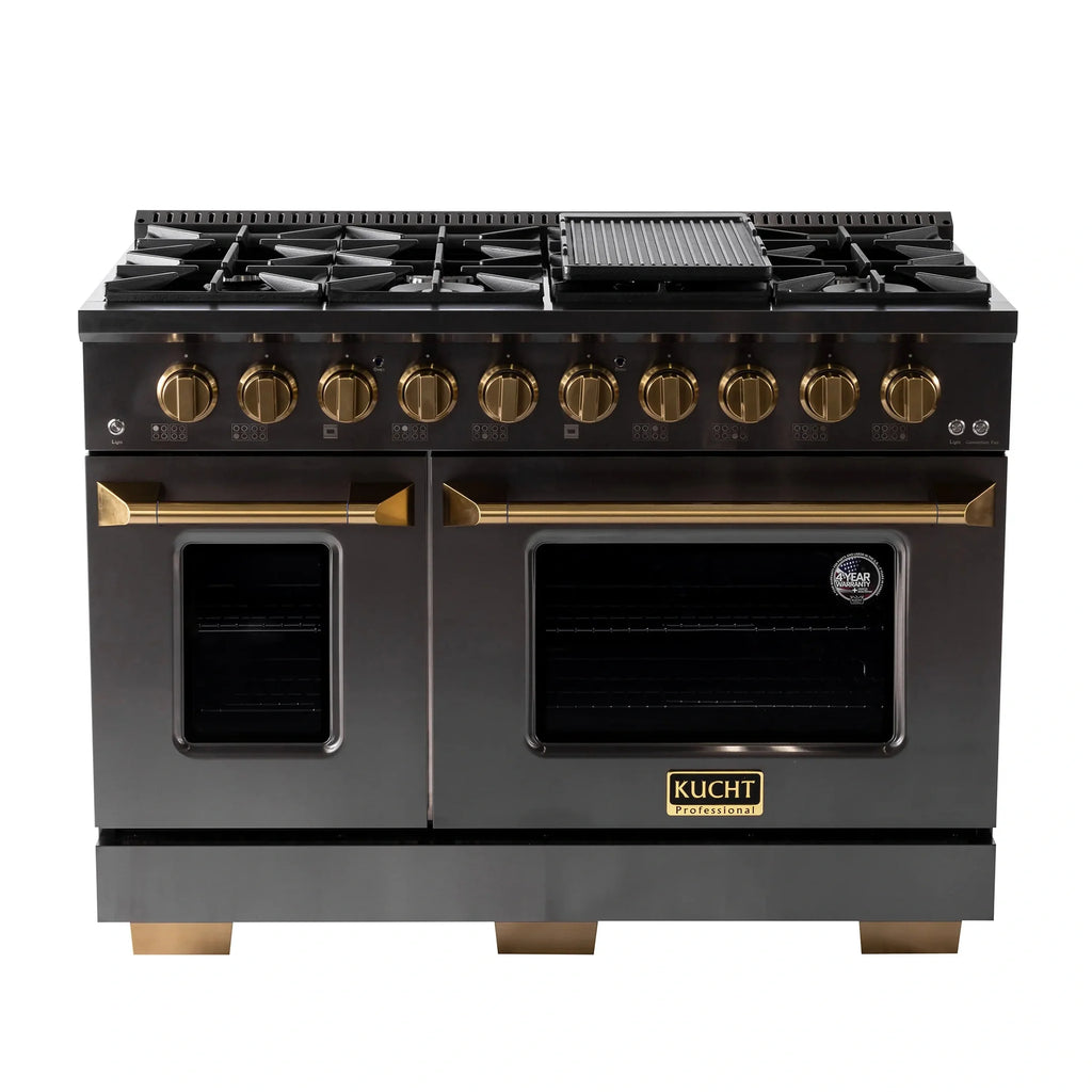 KUCHT Gemstone Professional 48-Inch 6.7 cu. ft. Natural Gas Range with Sealed Burners, Griddle/Grill and Two Ovens - One Convection - in Titanium Stainless Steel (KEG483)