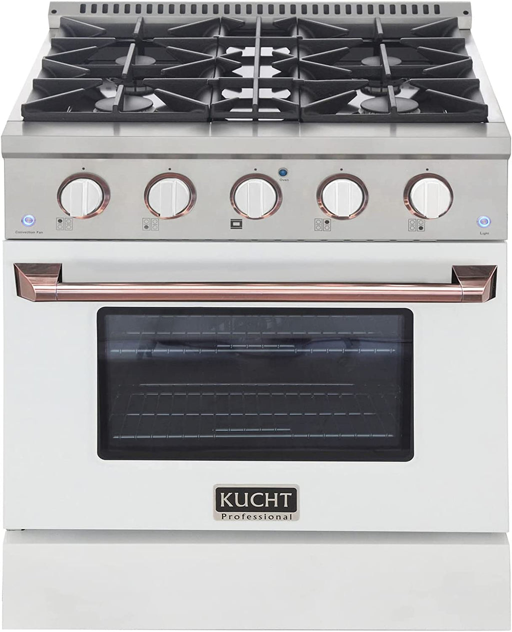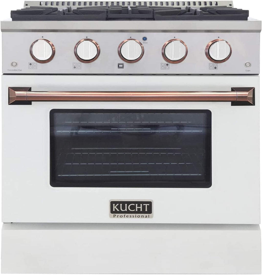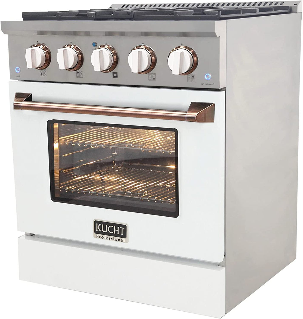 Kucht Signature 30" Gas Range in White with White Knobs & Rose Gold Handle (KNG301-W-ROSE)