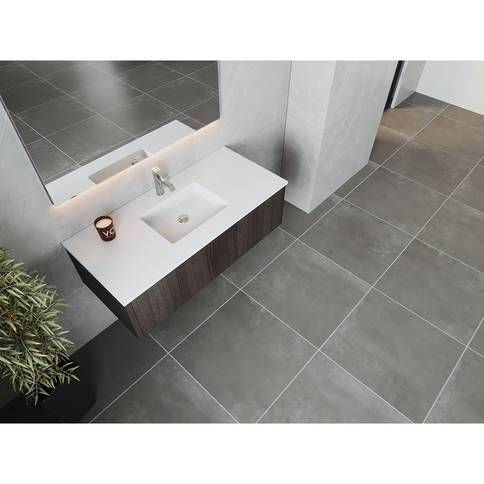 Laviva Legno 48" Carbon Oak Bathroom Vanity with Matte White VIVA Stone Solid Surface Countertop 313LGN-48CR-MW