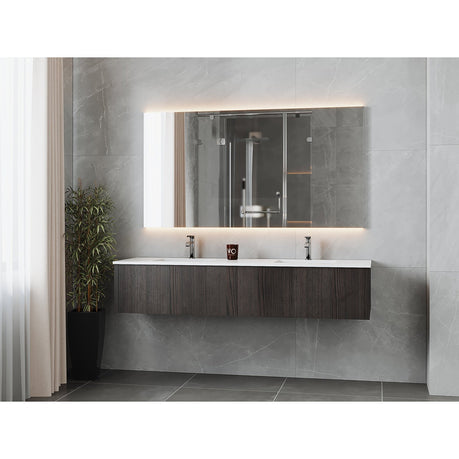 Laviva Legno 72" Carbon Oak Double Sink Bathroom Vanity with Matte White VIVA Stone Solid Surface Countertop 313LGN-72DCR-MW