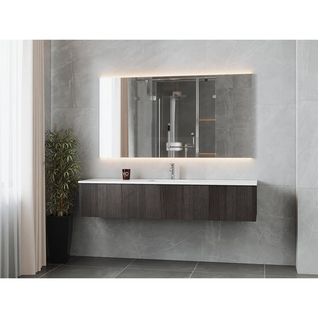 Laviva Legno 72" Carbon Oak Single Sink Bathroom Vanity with Matte White VIVA Stone Solid Surface Countertop 313LGN-72CCR-MW