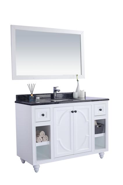 Laviva Odyssey 48" White Bathroom Vanity with Black Wood Marble Countertop 313613-48W-BW