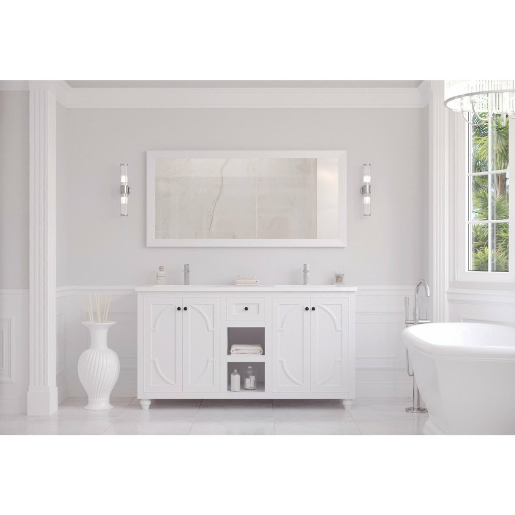 Laviva Odyssey 60" White Double Sink Bathroom Vanity with Matte White VIVA Stone Solid Surface Countertop 313613-60W-MW
