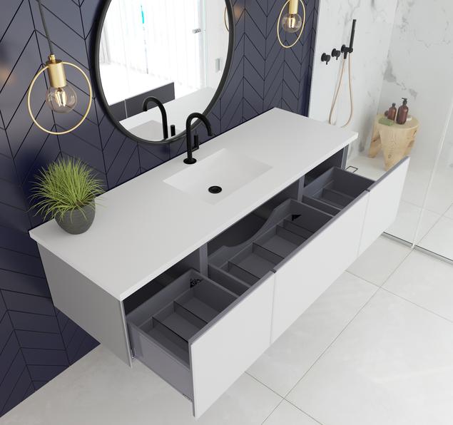 Laviva Vitri 66" Cloud White Single Sink Bathroom Vanity with VIVA Stone Matte White Solid Surface Countertop 313VTR-66CW-MW