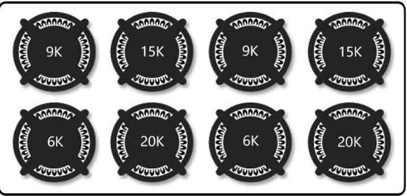 - Boasting 8 Individual Burners Two high intensity 20,000 BTU dual flame triple crown burners with extra low simmer, two 9,000 BTU burners, two 15,000 BTU burners and two 6,000 BTU burners.