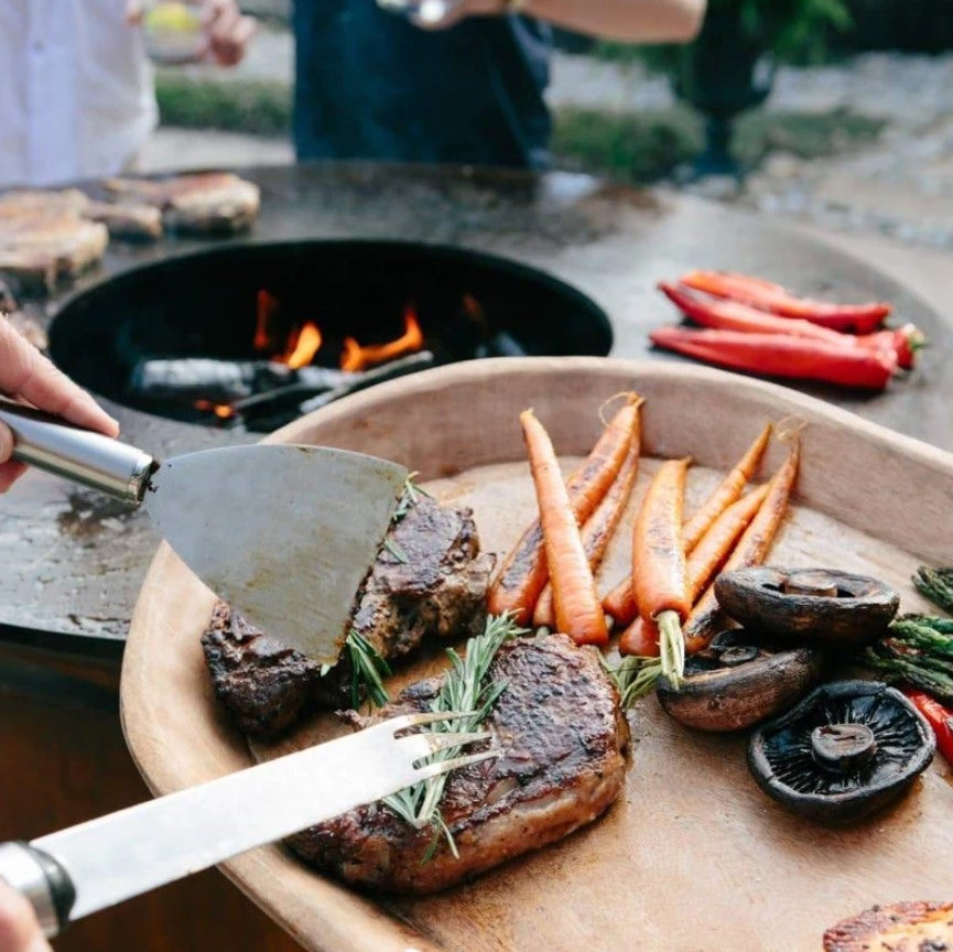 The Arteflame Classic 40" grill is a one-of-a-kind grilling experience. The cooktop is made of 1/2" carbon steel and the spun bowl is a high grade of US CORTEN steel or "weathering" steel. The round base is also crafted of CORTEN steel and is designed with "Classic" lines and unsurpassed functionality.