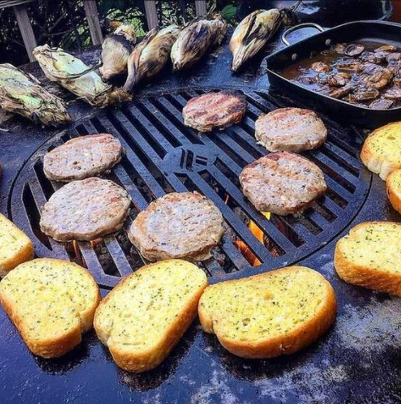Note: When the grill arrives, the cooktop will be silver (unseasoned). It will develop the dark color shown in the images once it's been used several times.