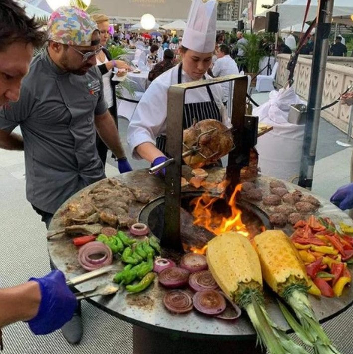 The Arteflame Classic 40" grill is a one of a kind grilling experience. The cooktop is made of 1/2" carbon steel and the spun bowl is a high grade of US CORTEN steel or "weathering" steel. The round base is also crafted of CORTEN steel and is designed with "Classic" lines and unsurpassed functionality.
