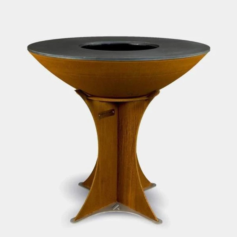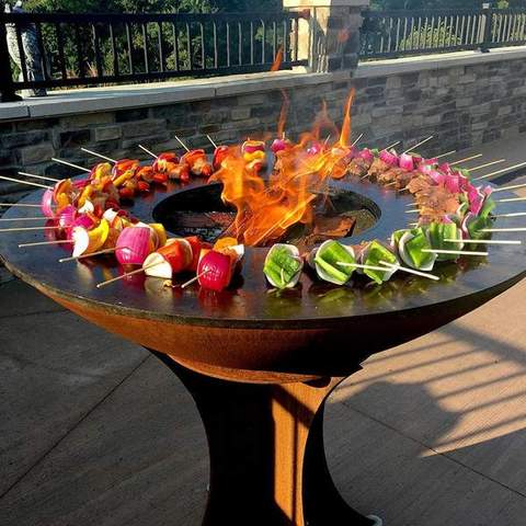 The Arteflame Euro 40" grill is a one of a kind grilling experience. The cooktop is made of 1/2" carbon steel and the spun bowl is a high grade of US CORTEN steel or "weathering" steel. The base is also crafted of 5 pieces of 3/8" CORTEN steel and easily pieces together with no tools needed. The Arteflame is designed with "Classic" lines and unsurpassed functionality.