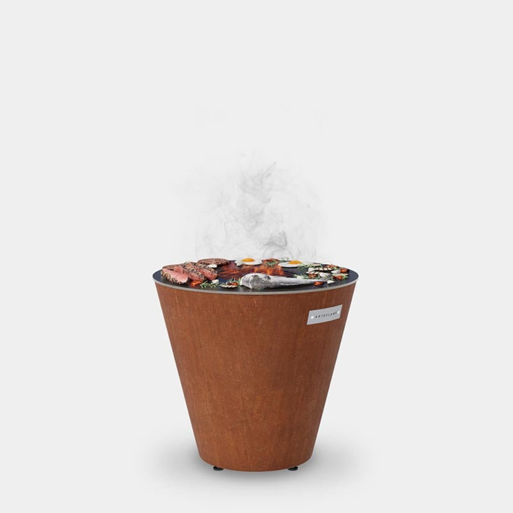 When not in use as a grill, Arteflame can also be enjoyed as a fire bowl with the cooktop on or off, providing warmth and a social and serene ambiance.