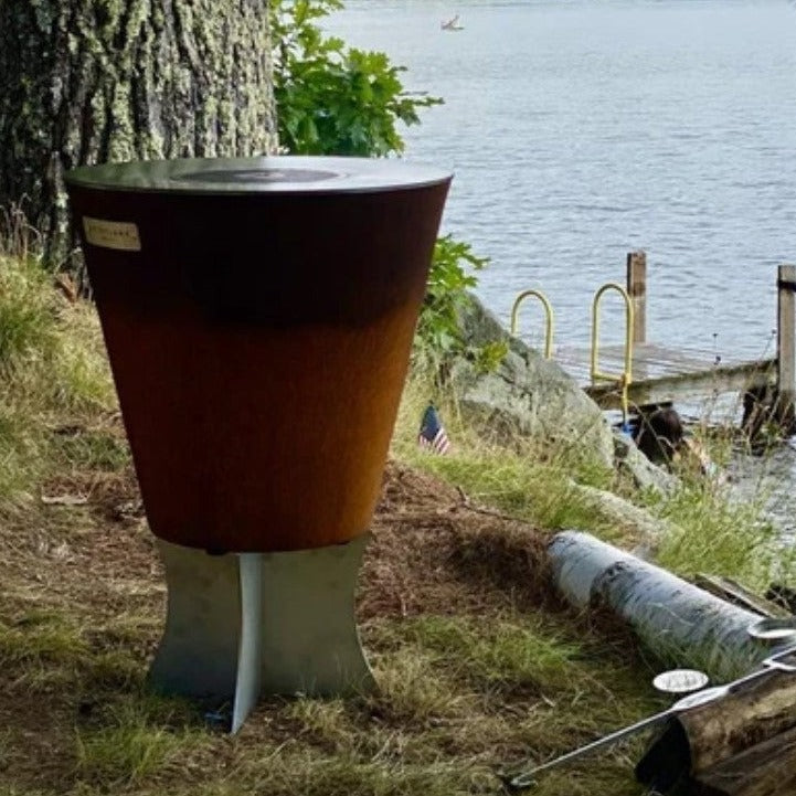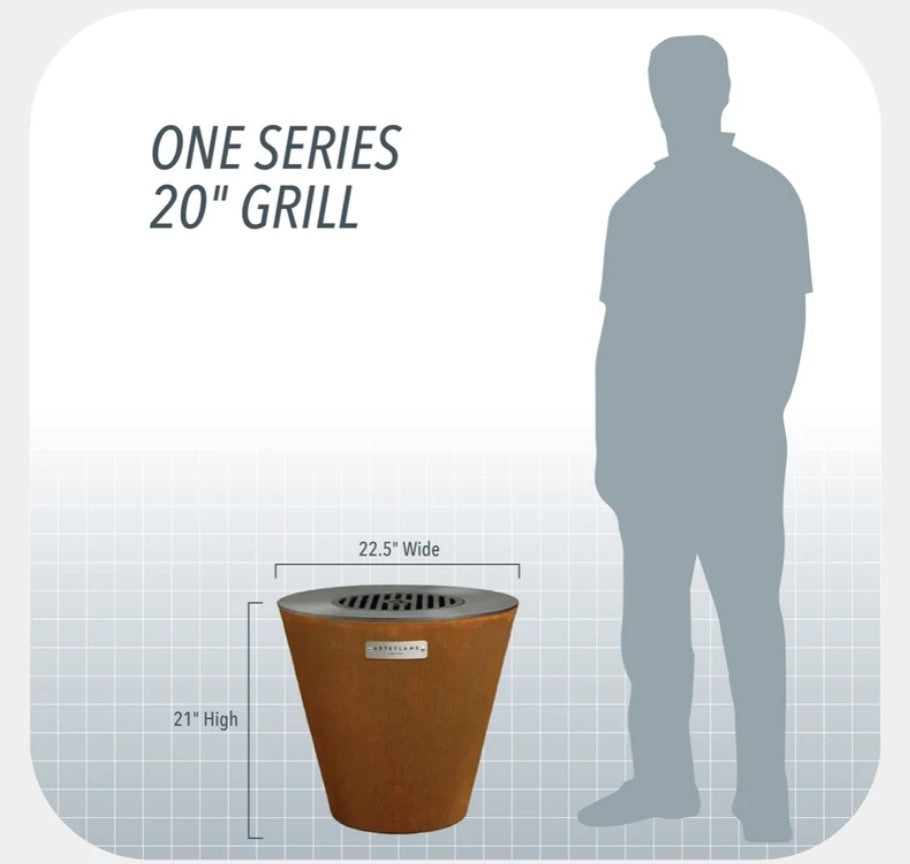 The new One Series Arteflame design is based on the same concept as the Classic Arteflame 40" grill but in a smaller format. The smaller design is fueled by charcoal or wood chunks and crafted in two pieces - a 1/4" carbon steel cooktop and a US CORTEN steel base made to last a lifetime. It is 20" tall and the cooktop is 22.5" in diameter, the same as a standard kettle-style grill.  The smaller format heats up faster and uses less fuel making it ideal for everyday grilling for a family.