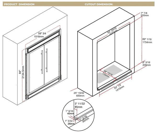 | Cutout Dimensions | 55.9" W X 28.94" D X 69.06" H |
